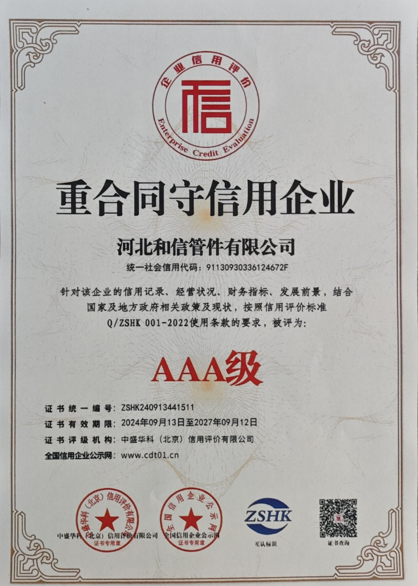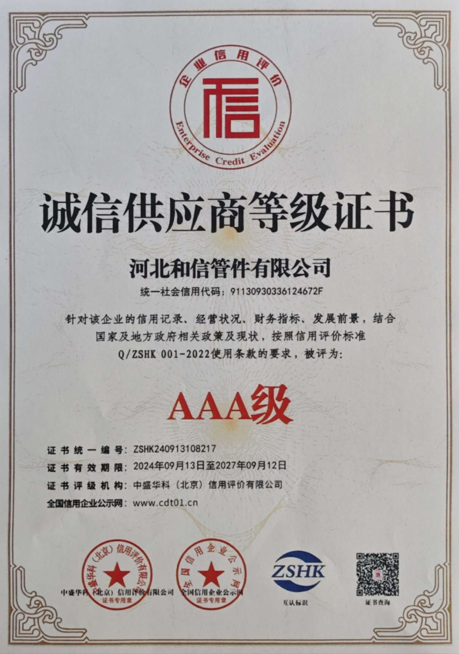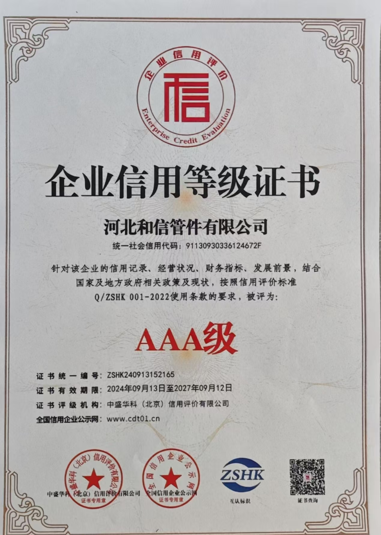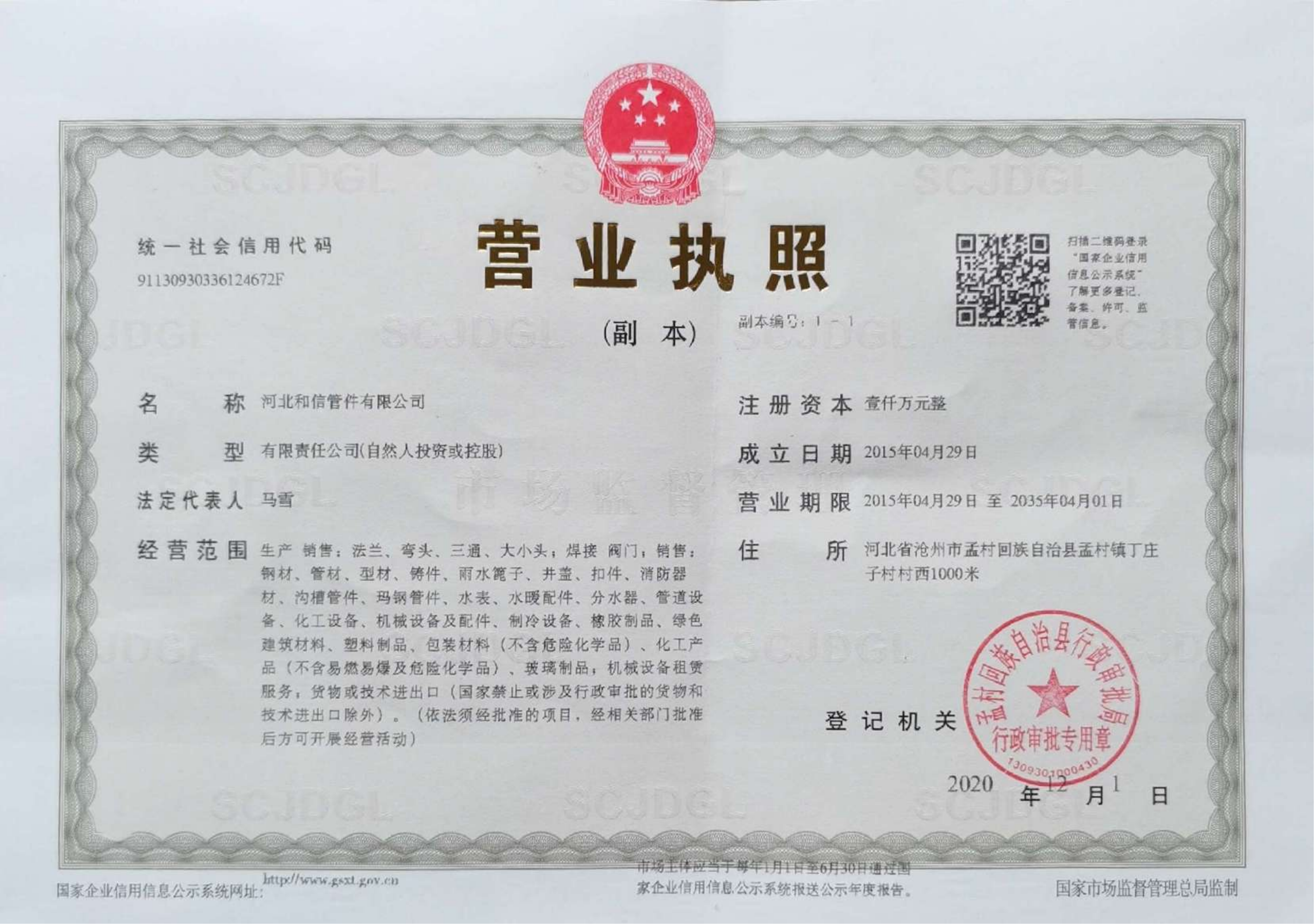 河北和信管件有限公司位于河北省东南部,东临渤海,北靠京津,交通通信便利。生产与销售的大型企业,主导产品有法兰、弯头、管件、钢管、钢材、阀门、管道设备等,采用碳钢、合金钢、不锈钢原厂钢材,执行ASTM、DIN、DLT、HG、JB、JIS、MSS、SH、SY、ROCT等生产标准,非标产品定制生产。同时提供诸多增值服务,代购代采,方便客户,实现管道控制系统一站式采购,为客户节约采购成本。公司至今拥有占地面积1万四千平米,固定资金1000万,员工96人,年产量20000吨。在石油、化工、电力、造船、矿产、锅炉、制药等多个领域广泛使用。产品品质,价格和员工的服务得到客户的满意与认可。